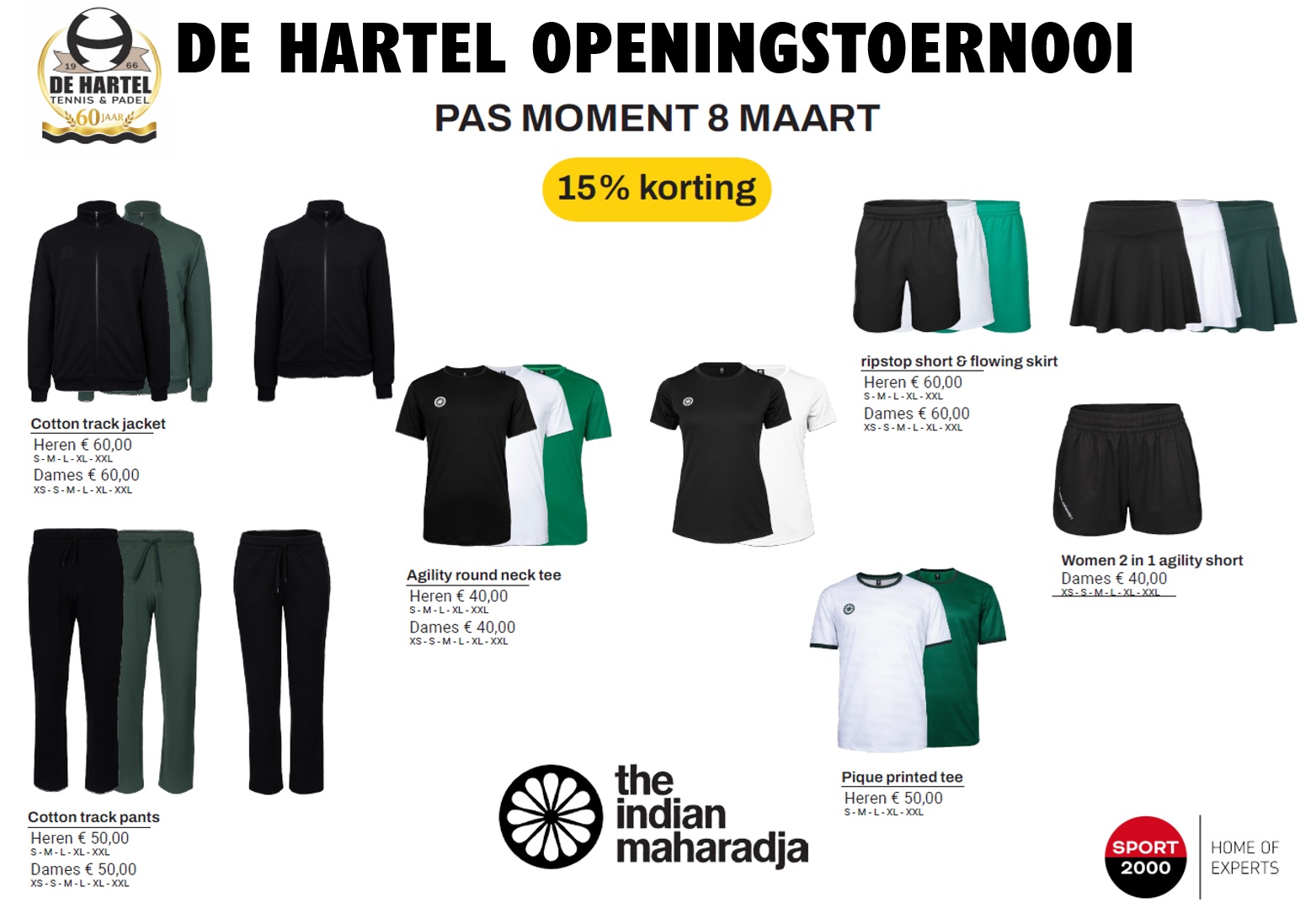 Dus kom zondag 8 maart je nieuwe tennis- en padelkleding passen, uitzoeken en bestellen. Samen in stijl het jubileumjaar in. Samen De Hartel!